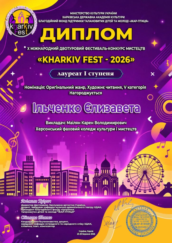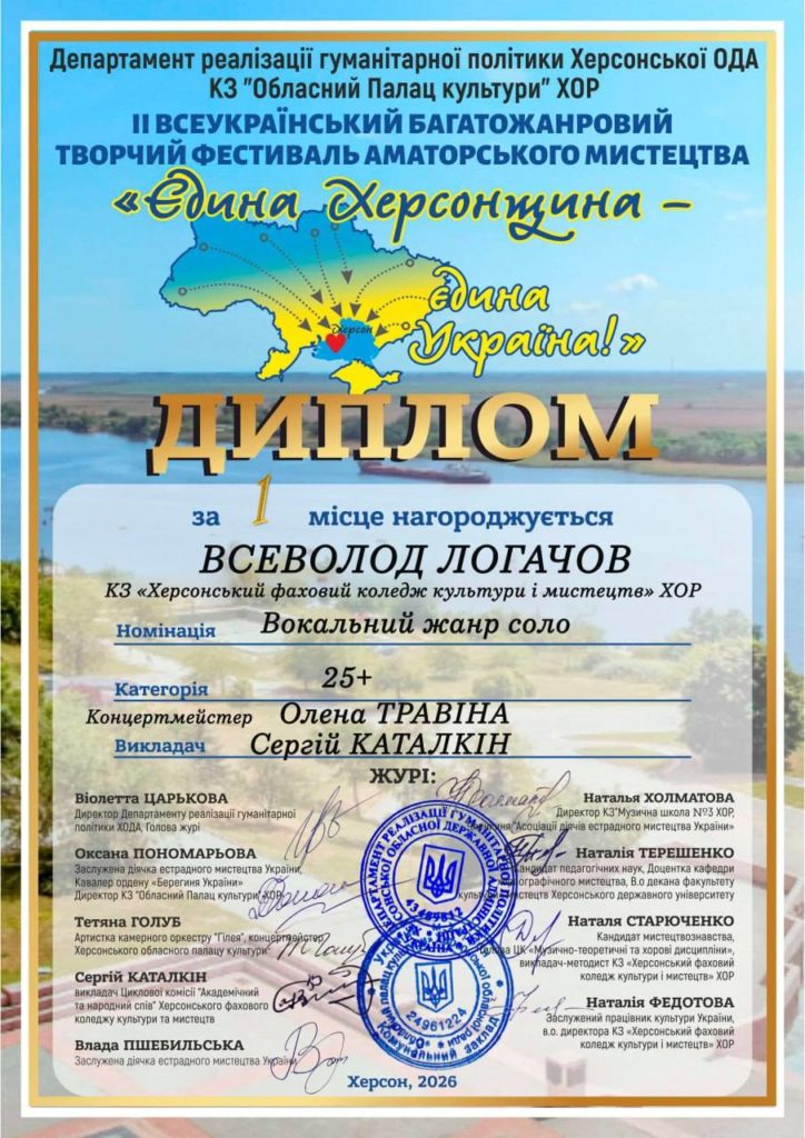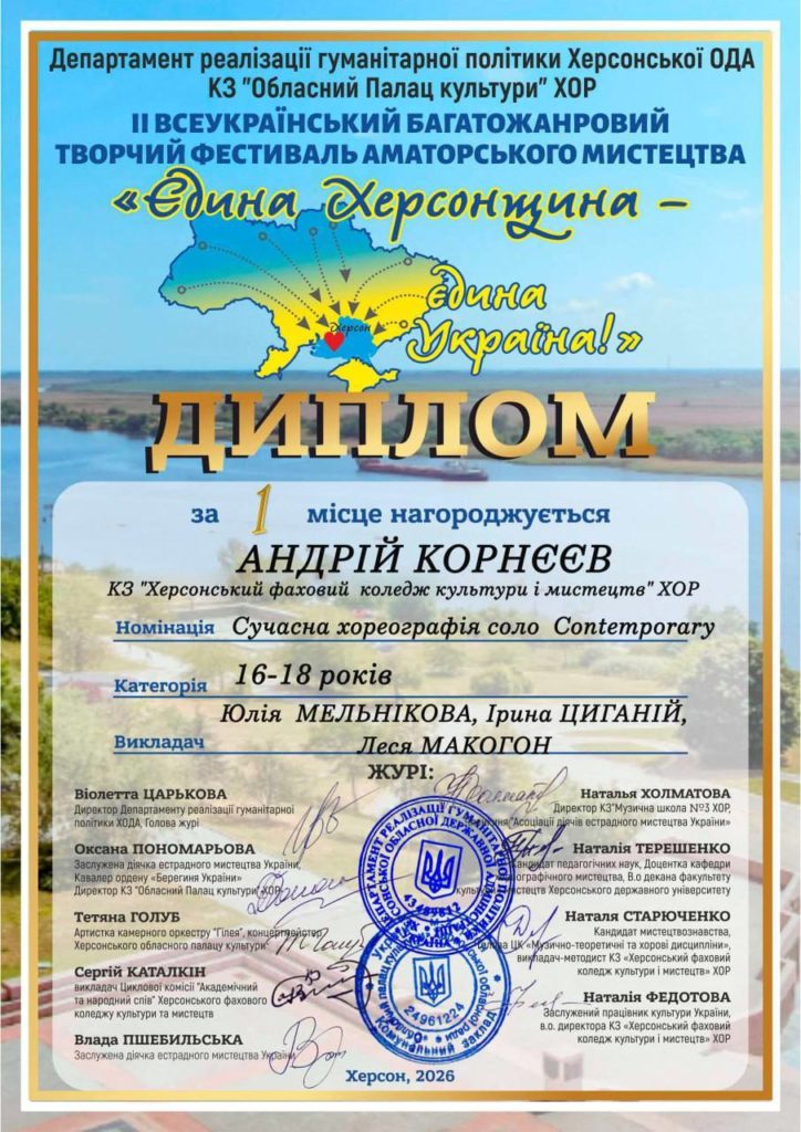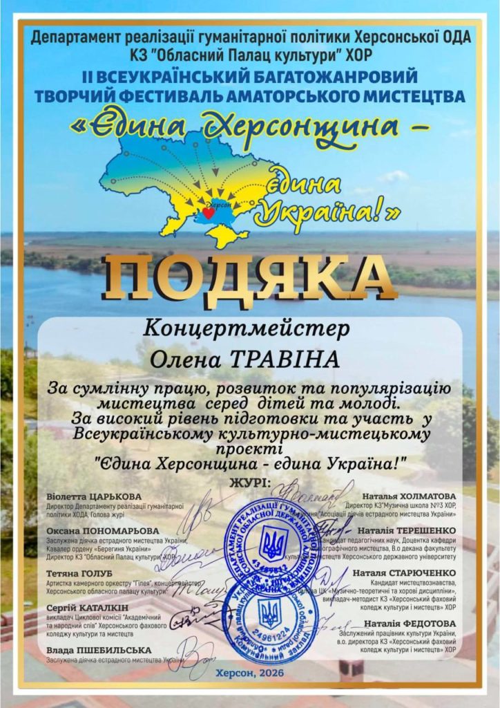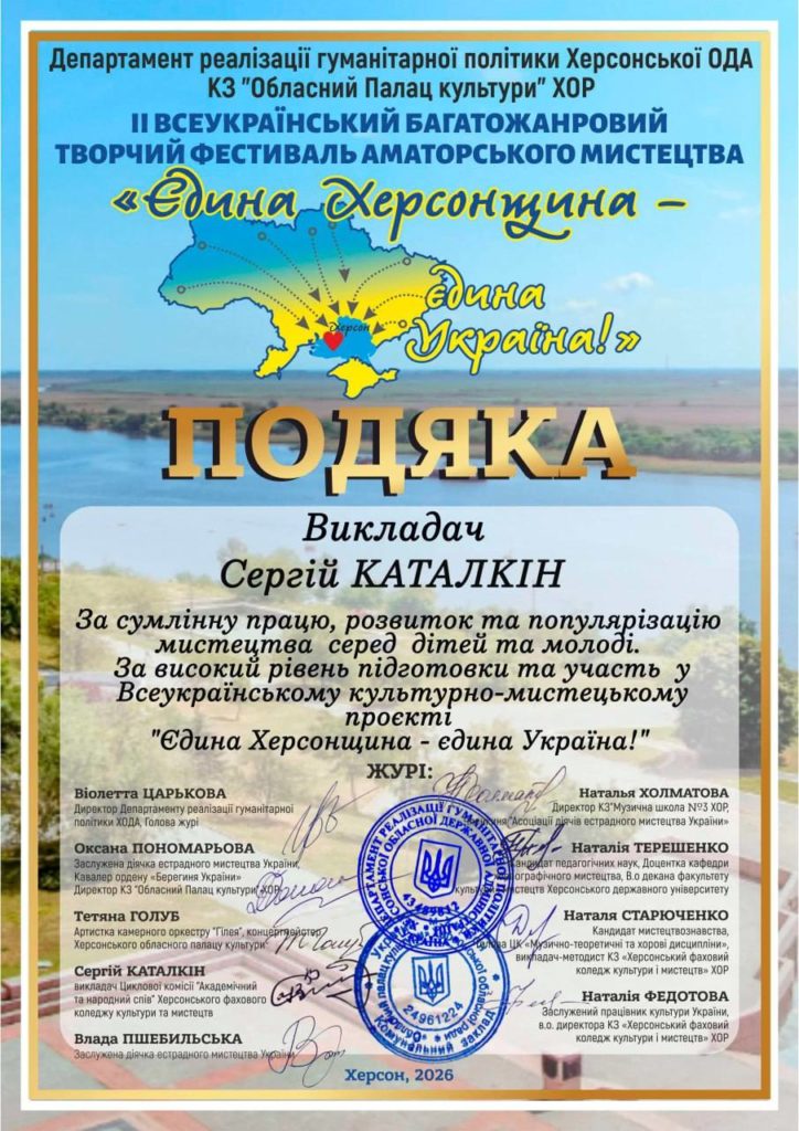 Дякуємо організаторам: Віолетті Царьковій, Андрію Ярьоменко, Оксані Пономаревій, Херсонському обласному Палацу культури, учасникам і всім, хто продовжує творити українське мистецтво навіть під час війни.