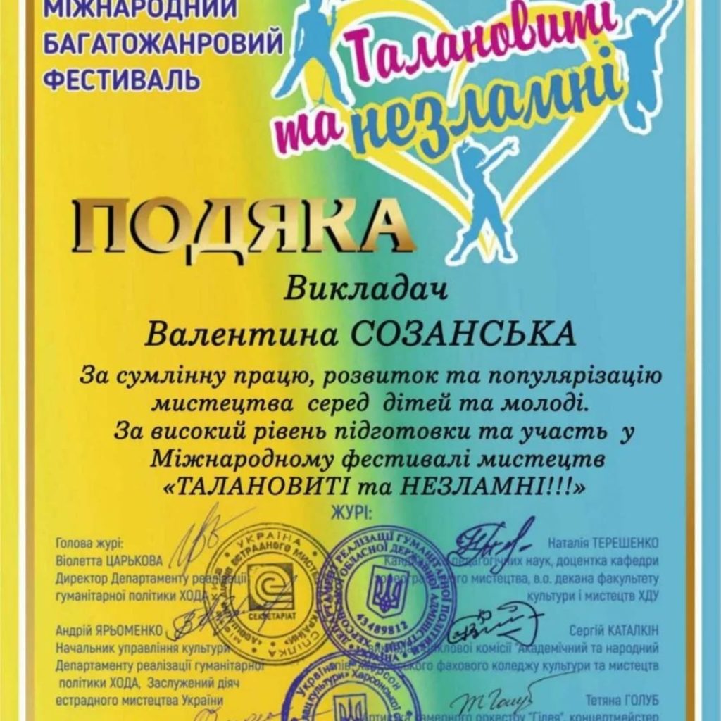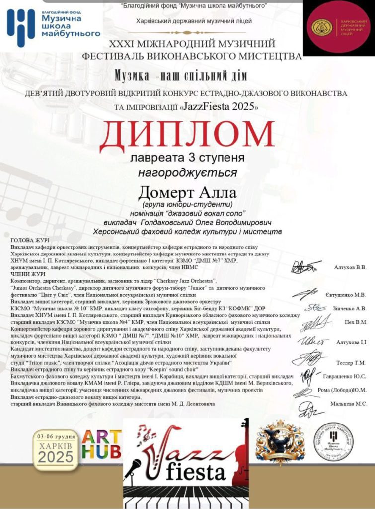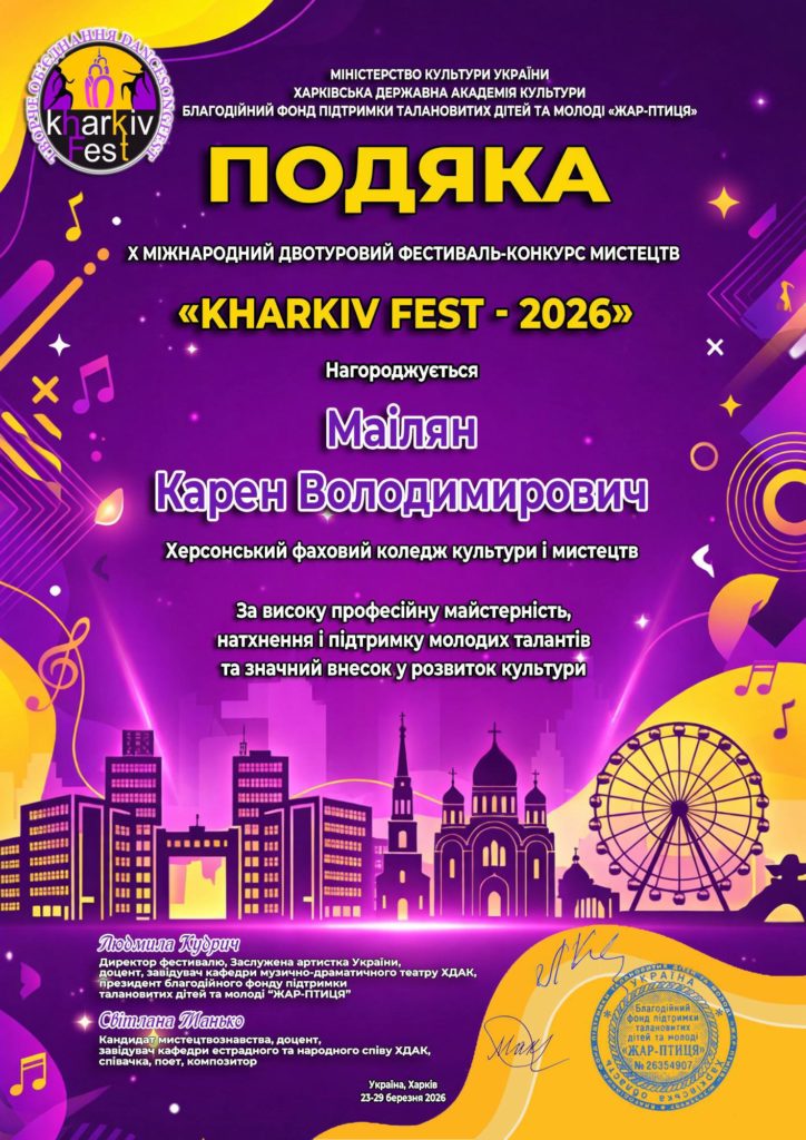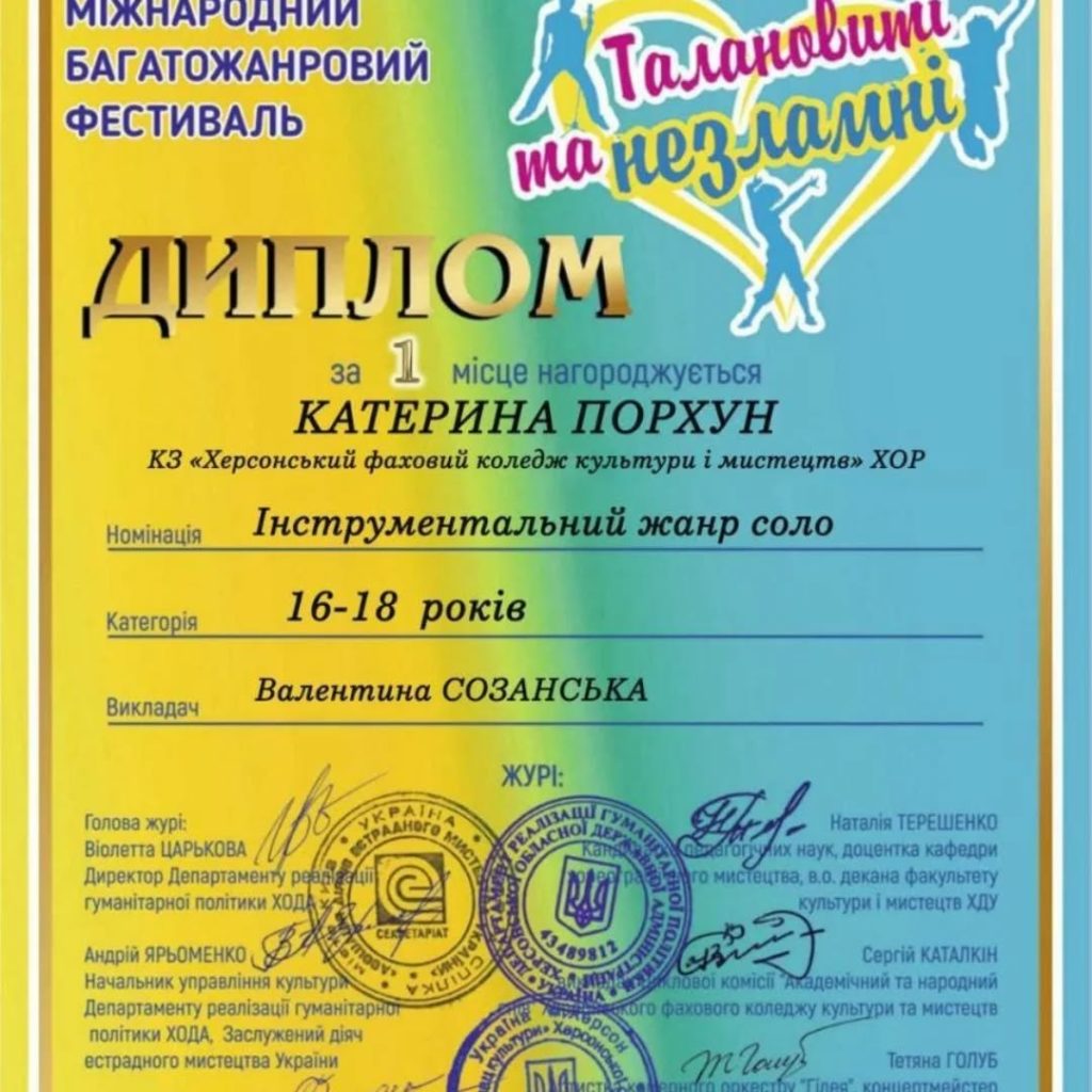 Дякуємо організаторам: Віолетті Царьковій, Андрію Ярьоменко, Оксані Пономаревій, Херсонському обласному Палацу культури, учасникам і всім, хто продовжує творити українське мистецтво навіть під час війни.