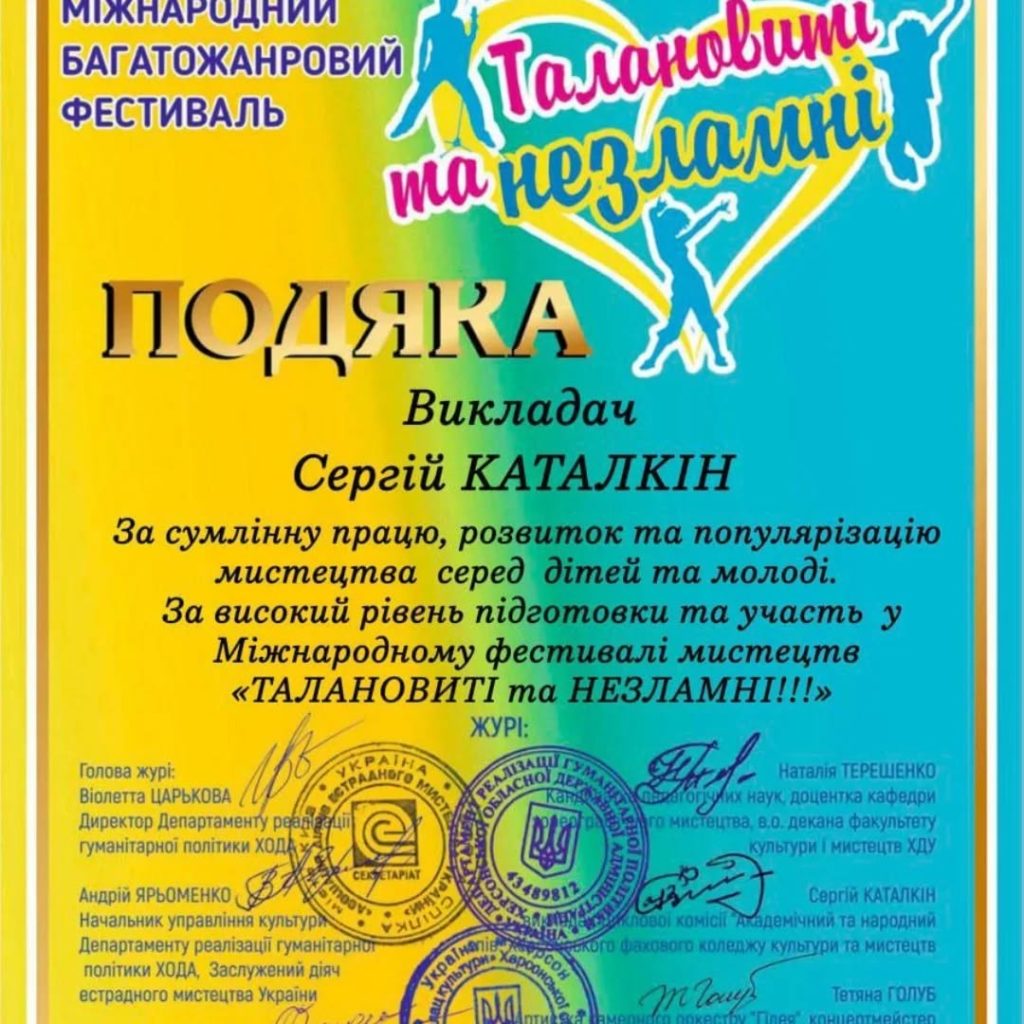 Особлива подяка нашому викладачу Сергію Каталкін — члену журі фестивалю, який не лише оцінював, а й надихав своїм мистецтвом!