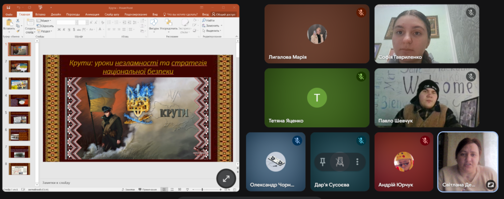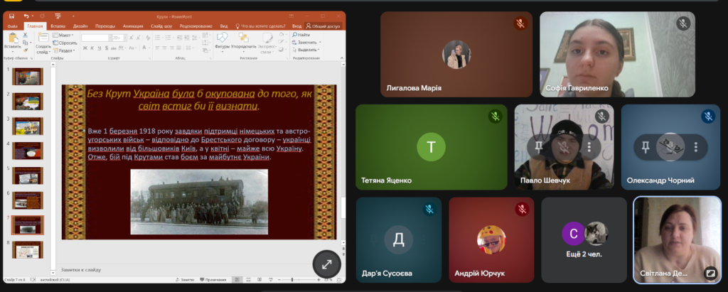 У рамках відзначення 107-ї річниці бою молодих вояків Української Народної Республіки з московськими більшовицькими окупаційними військами біля станції Крути 29 січня 1918 року для здобувачів освіти І курсів Херсонського фахового коледжу культури і мистецтв було проведено виховну годину у формі усного журналу на тему «Пам’ятай про Крути…», під час якої студенти мандрували сторінками спогадів та документальних свідчень про ті події.