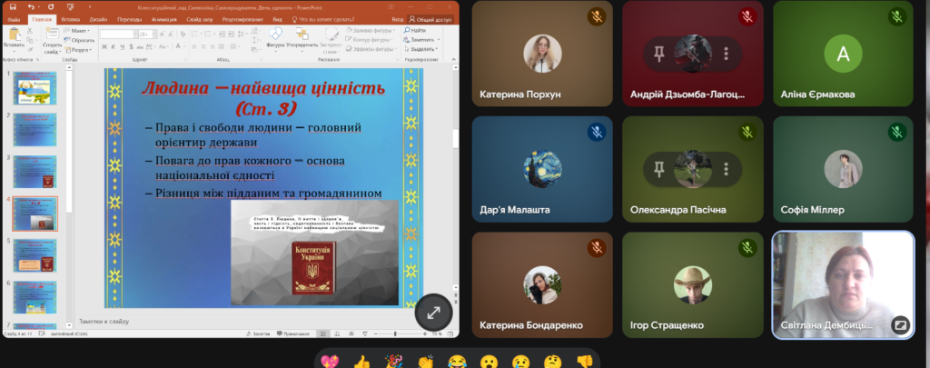 В рамках відзначення цієї дати, здобувачі освіти Херсонського коледжу культури і мистецтв провели круглий стіл на тему «Ми обираємо демократію», в ході якого обговорили основні засади демократичного суспільства, такі як: свобода слова, політична свобода, рівноправність громадян, поділ влади, плюралізм. І саме зараз наші воїни відстоюють основні демократичні цінності: свободу, рівність, справедливість, толерантність, повагу. Дякуємо кожному і кожній, хто бореться за світле майбутнє незалежної та демократичної України!