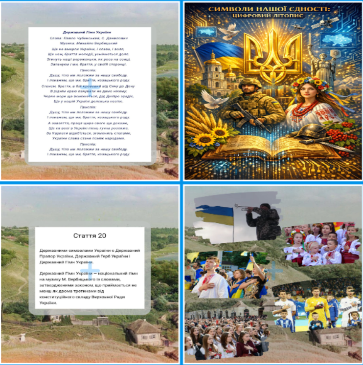 Здобувачі освіти Херсонського фахового коледжу культури і мистецтв активно долучилися до відзначення цієї важливої для кожного українця дати, узявши участь у низці тематичних заходів, що поєднали цифрові технології, мистецтво та глибокі роздуми про майбутнє. Студенти презентували медіа-проєкт «Символи нашої єдності: цифровий літопис». У межах цього проєкту студенти створили серію авторських цифрових зображень із державною символікою, поєднавши традиційні українські коди з сучасними графічними рішеннями, які стали візуальною мовою супротиву та ідентичності. Узяли участь у панельній дискусії «Єдність – наша культурна ДНК», в ході якої студенти дискутували про роль мистецтва у часи випробувань, функціонування культурного фронту як невід’ємної частини українських реалій. Формування свідомої громадянської позиції здобувачів освіти продовжилося під час виховної бесіди «У єдності наша сила!». Крім цього, студенти поділилися своїми роздумами у есе на тему «Як інформація в соцмережах впливає на нашу єдність?». Здобувачі освіти проаналізували вплив механізми впливу цифрових платформ на суспільну думку, наголосивши на важливості медіагігієни в умовах інформаційного протистояння.