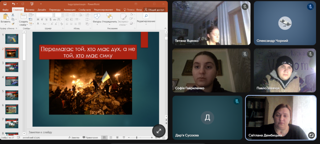Долучилися до марафону пам’яті «Герої першої перемоги у битві, що триває», під час якого здобувачі освіти проаналізували хронологію подій Революції Гідності. Формат презентації дозволив не просто переглянути факти, а й обговорити емоційне навантаження кожного етапу Майдану. Особливу увагу приділили постатям героїв, чия самопожертва стала фундаментом для формування сучасного громадянського суспільства.