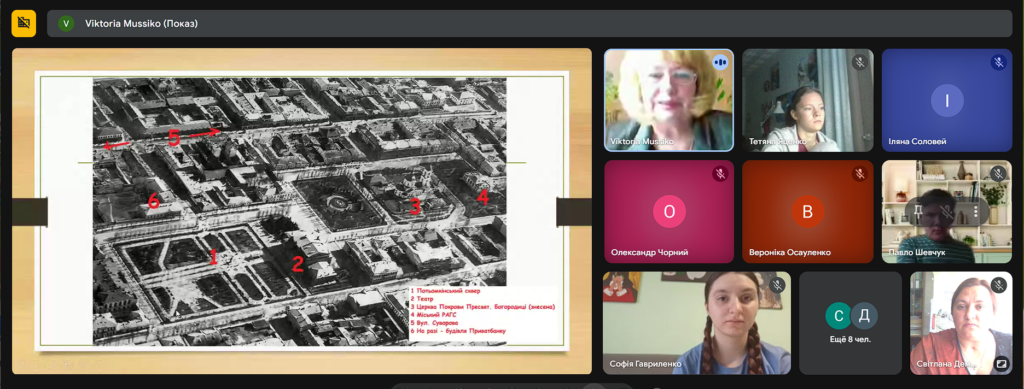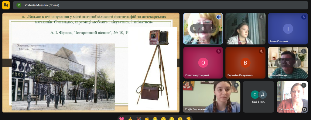 Вікторія Вікторівна провела здобувачів освіти віртуальними вулицями старого міста, розповіла історію майже кожної будівлі та показала унікальні листівки і фотографії, які дбайливі херсонці передали в музей. Це дало змогу зберегти пам’ять про місто, щоб вона жила у віках.