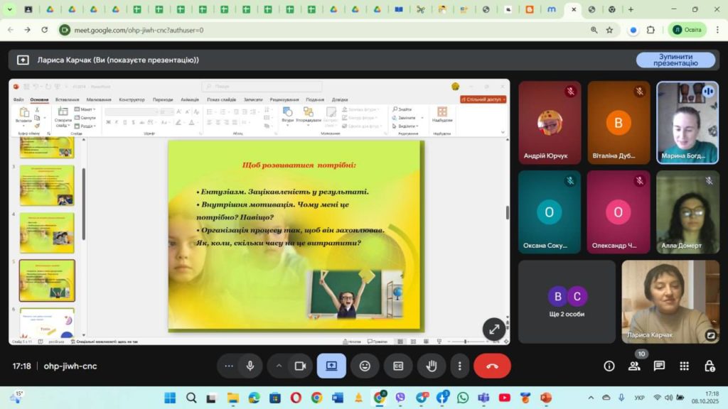8 жовтня 2025 року здобувачі освіти 1 курсу спеціальності Музичне мистецтво провели годину спілкування «Мотивація до навчання – один з найважливіших факторів успішного дистанційного навчання». Студенти коледжу розповідали про те, що для них мотивація є тією внутрішньою силою, що спонукає прагнути знань, долати труднощі та досягати нових вершин у навчанні. А це дуже важливо усвідомити вже з 1 курсу. Здобувачі поділилися думками, що для них є успіх, разом складали візуалборд, прокладали «Дорогу до цілей». Студенти дійшли висновку, що особливістю дистанційного навчання є те, що змусити вчитися не можна, необхідна наявність бажання, а це і є мотивацією навчальної діяльності
