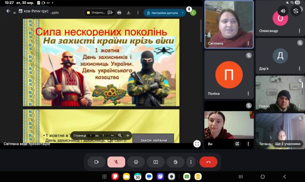 Здобувачі освіти Херсонського фахового коледжу культури і мистецтв долучилися до відзначення Дня захисників і захисниць України, узявши участь у низці тематичних заходів: в історичних читаннях на тему «Шляхи звитяги: від лицарів степу до воїнів світу», у виховній годині «Сила нескорених поколінь», у виховній бесіді на тему «Янголи-охоронці у камуфляжі». Під час цих заходів студенти говорили про тих, хто захищав нашу державність починаючи ще з давніх часів – про козаків, діячів Української революції, учасників Української повстанської армії, сучасних воїнів-захисників. Аналізуючи історію державотворення нашої Батьківщини, проводили паралелі тогочасної боротьби за нашу незалежність з подіями сьогоденням. Знайомилися зі структурою Збройних сил України, їхніми емблемами та спеціалізацією.