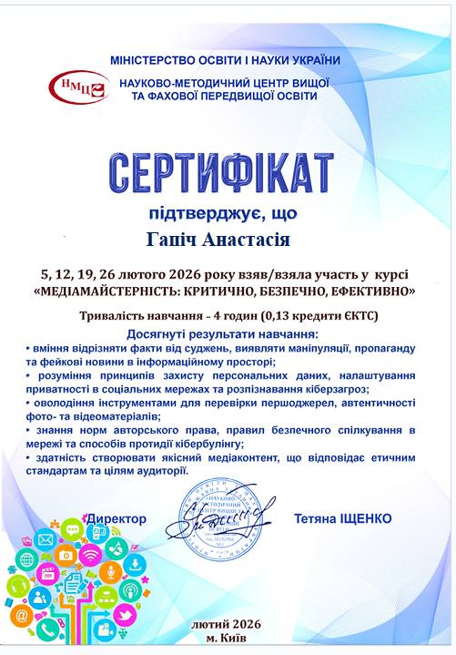 - Основи медіагігієни та вплив інформаційного потоку на свідомість