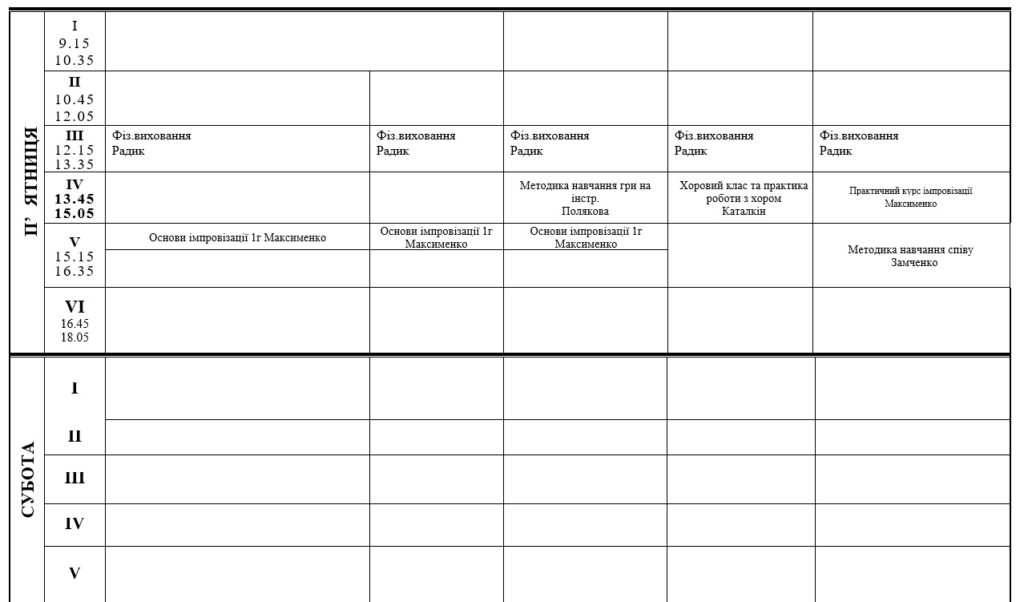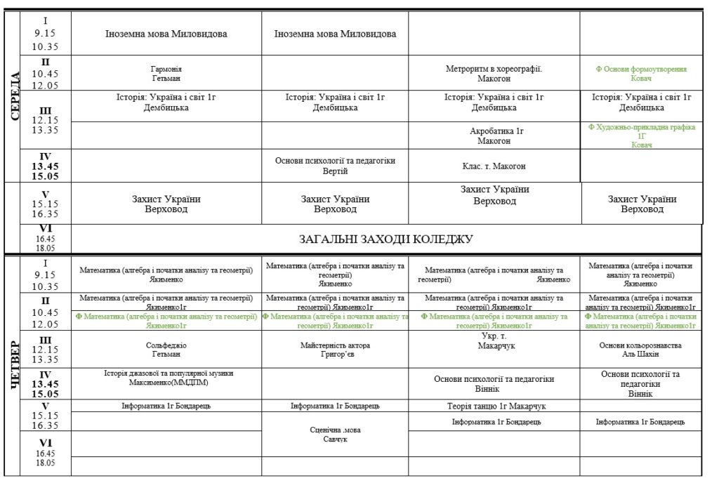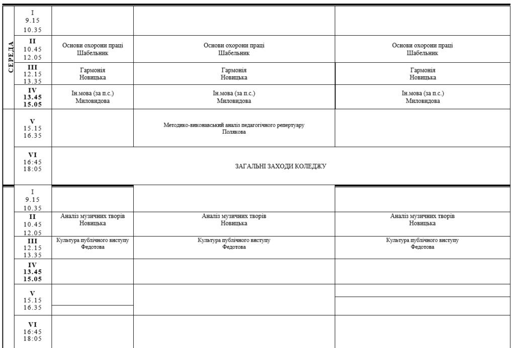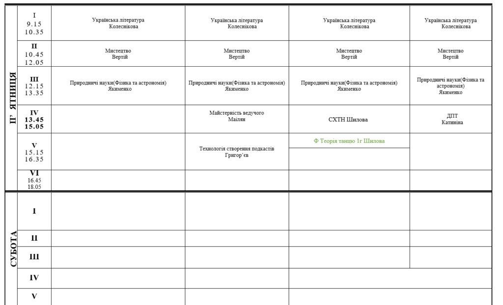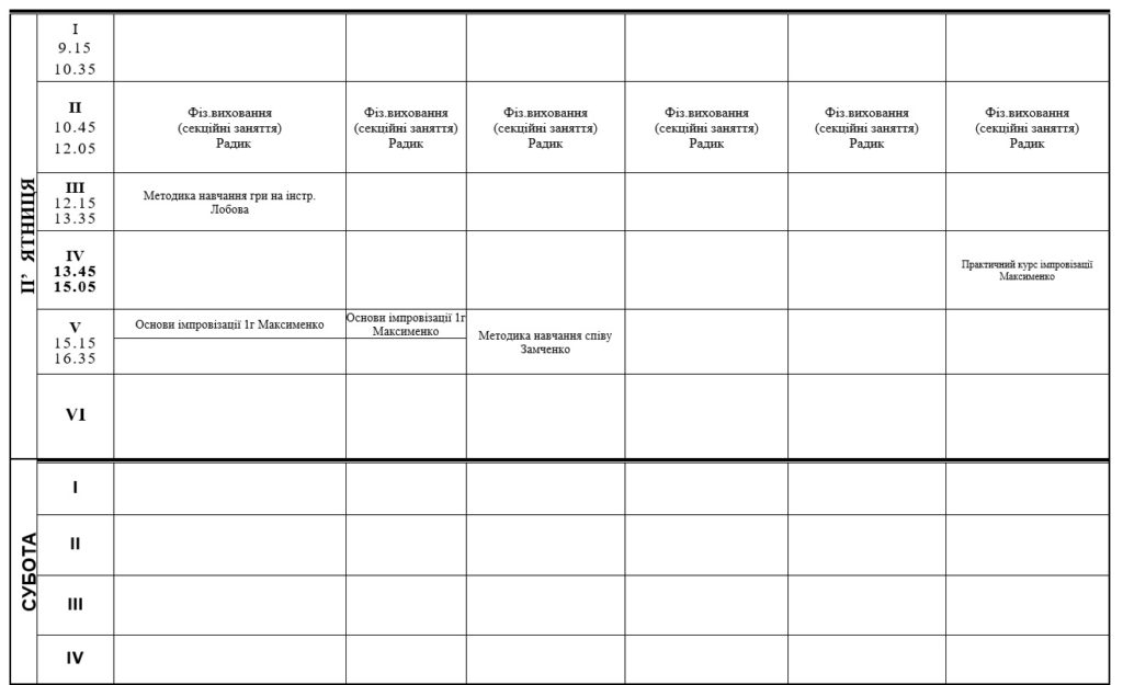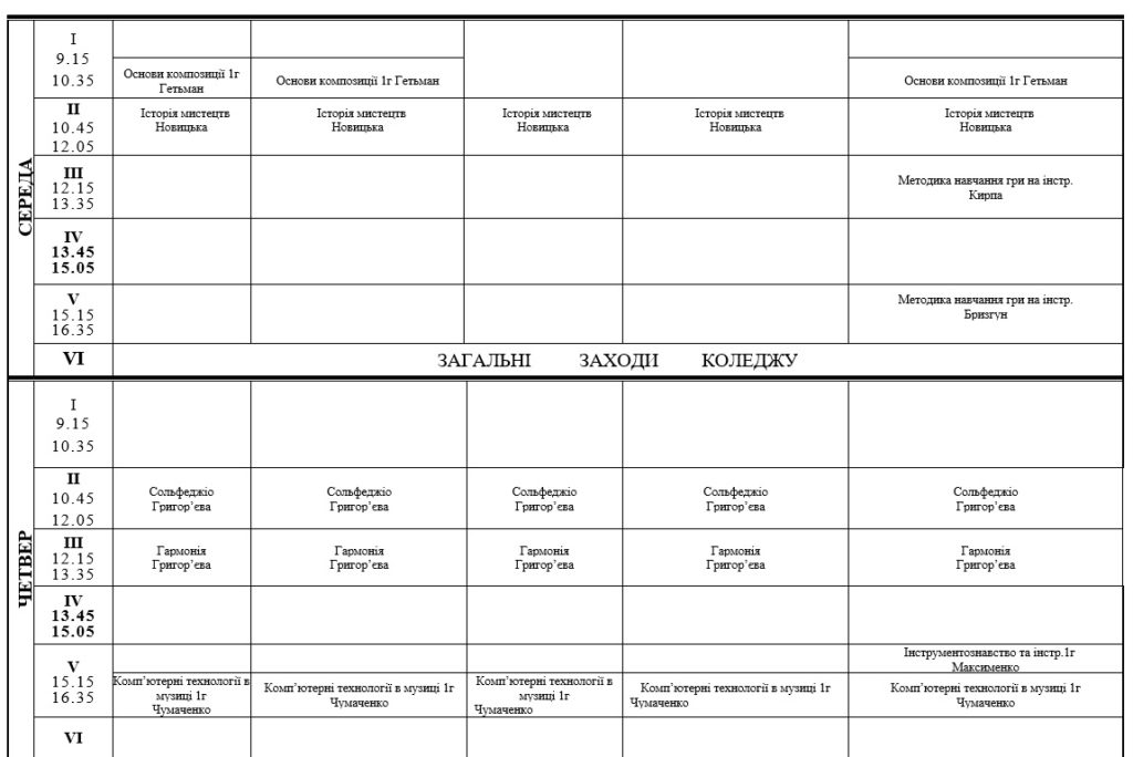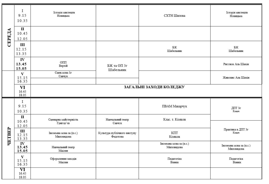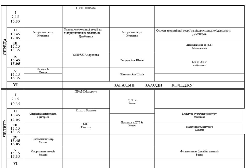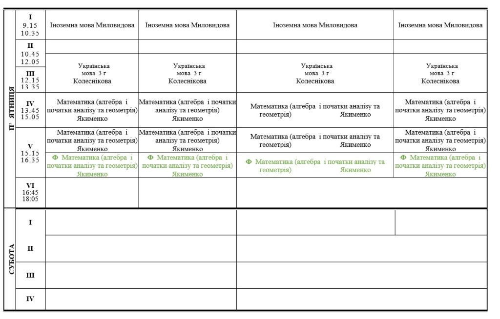 РОЗКЛАД ЗАНЯТЬ