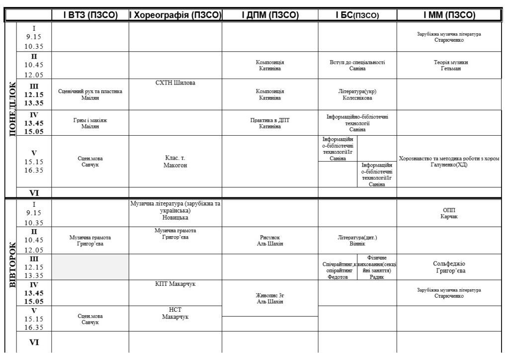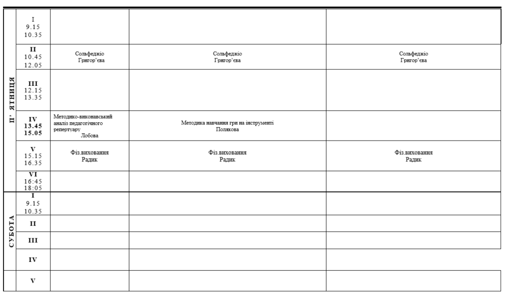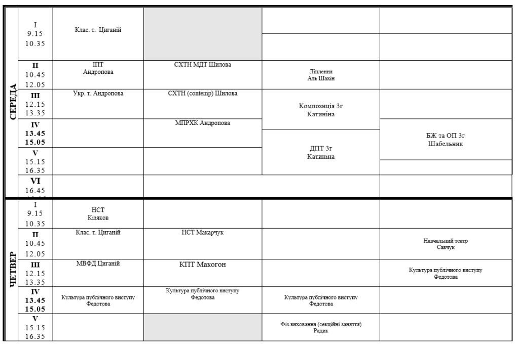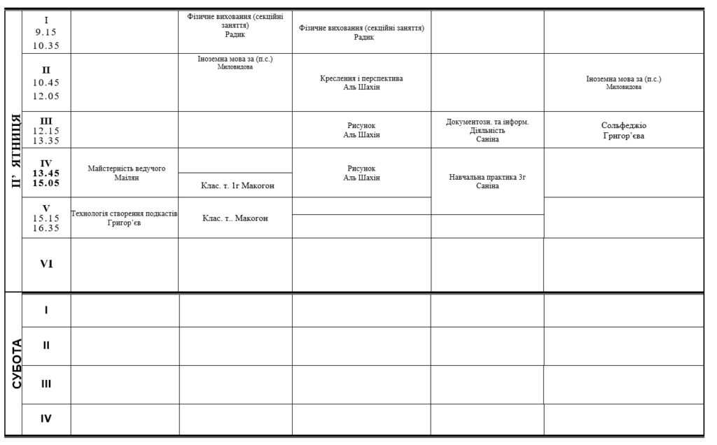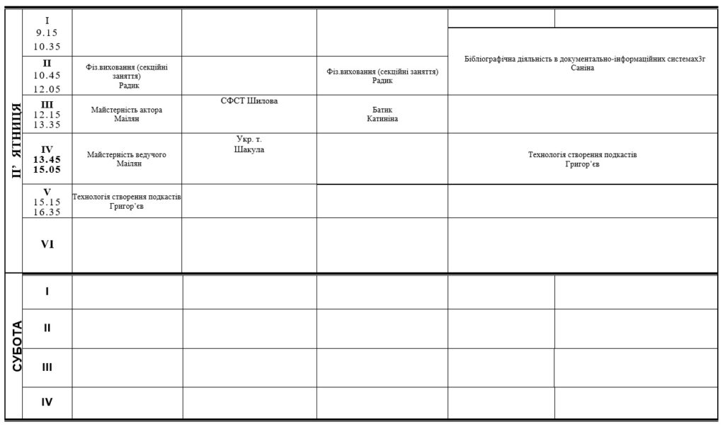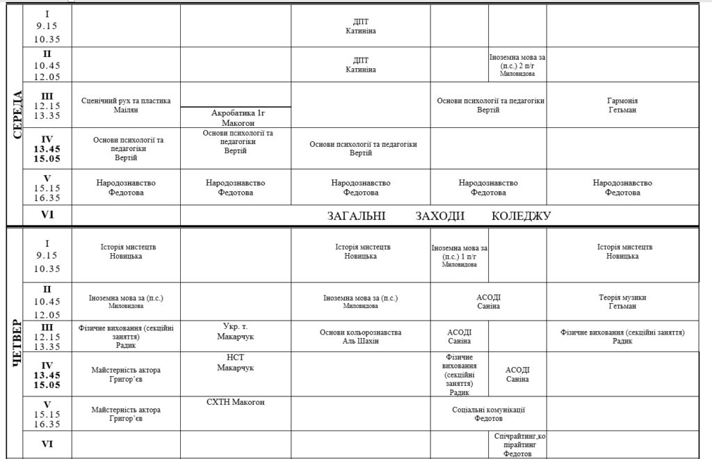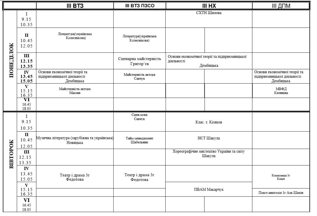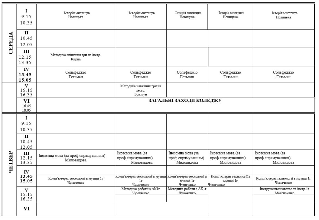 РОЗКЛАД ЗАНЯТЬ