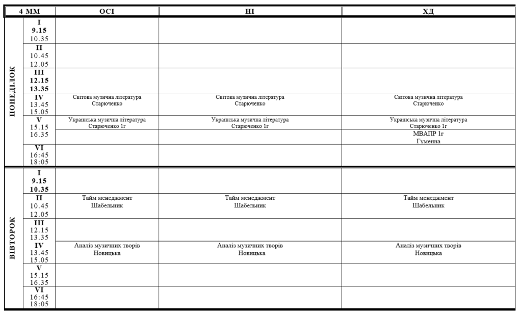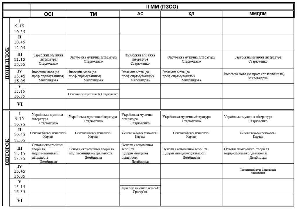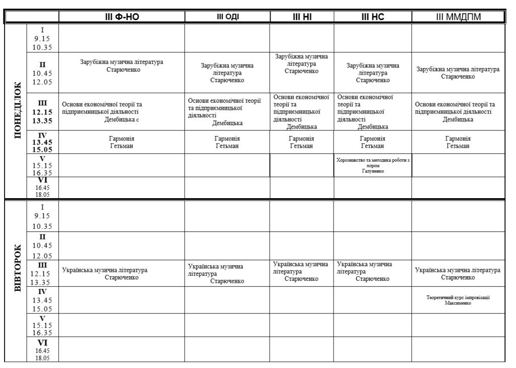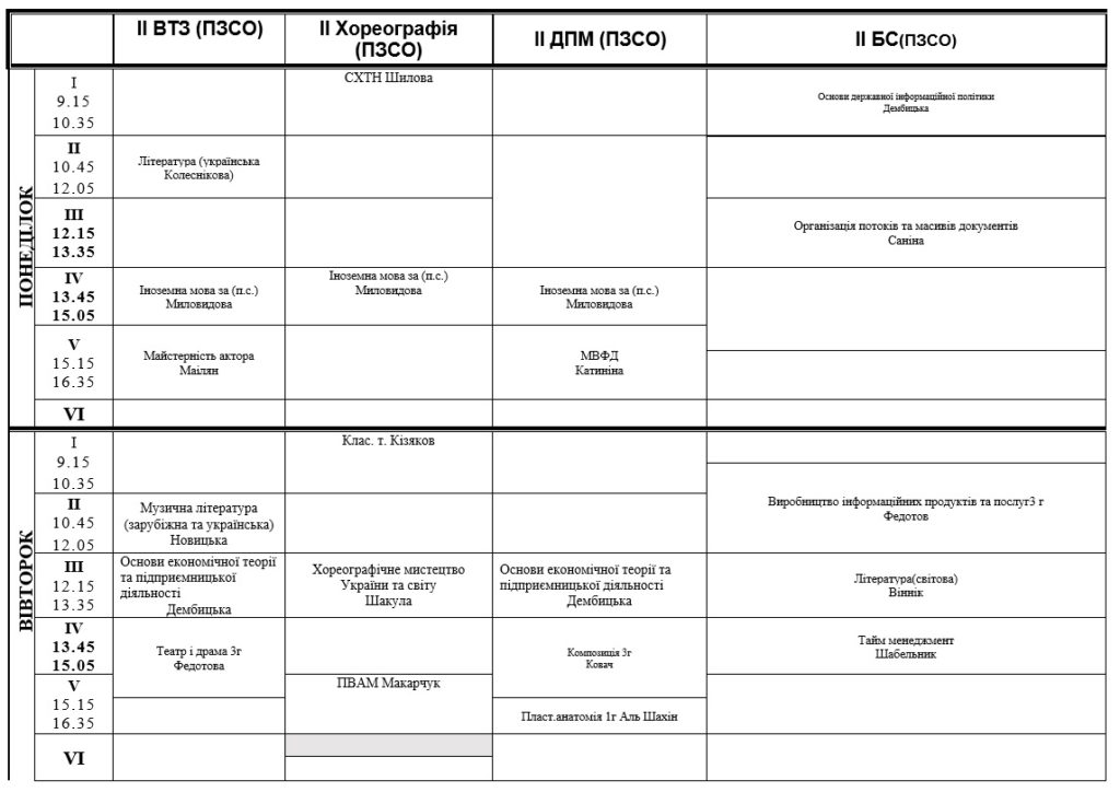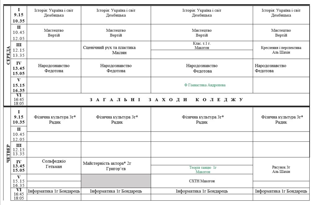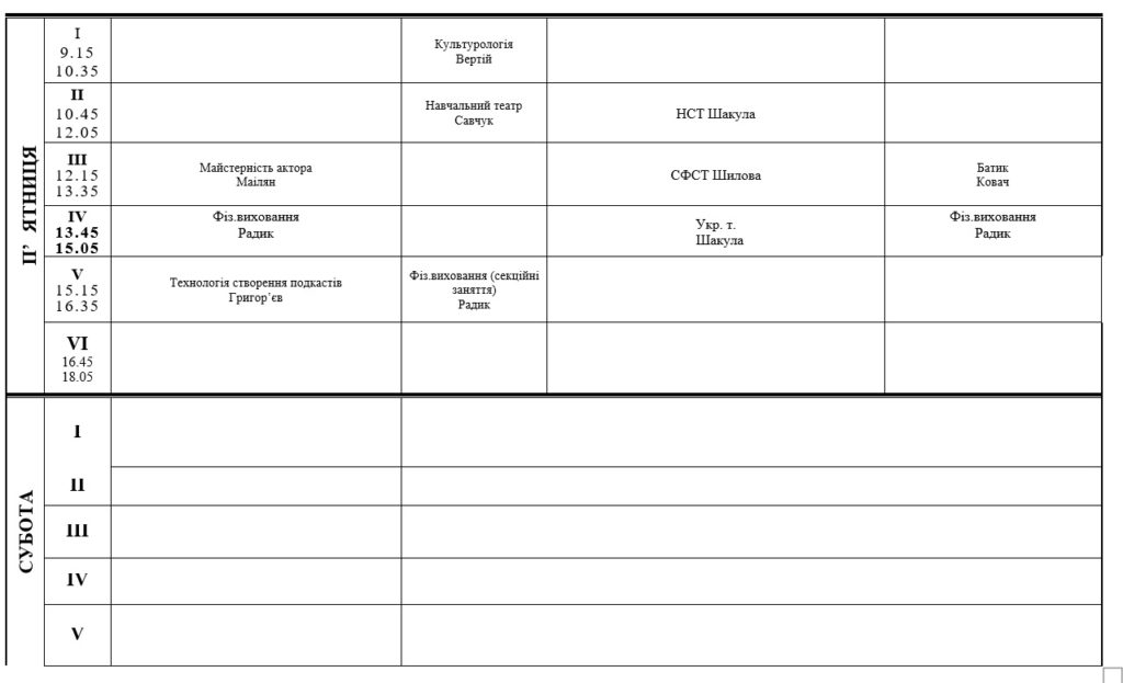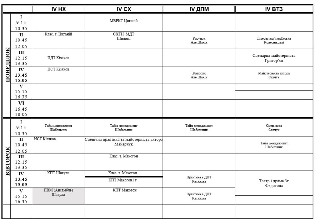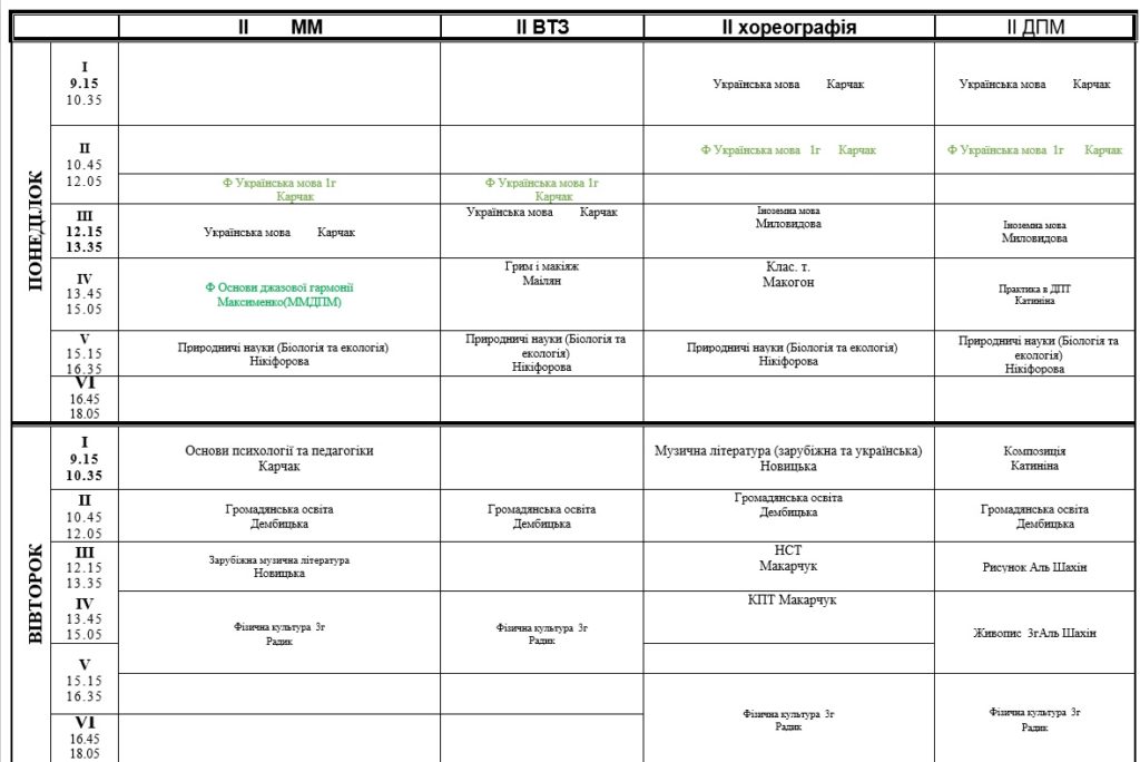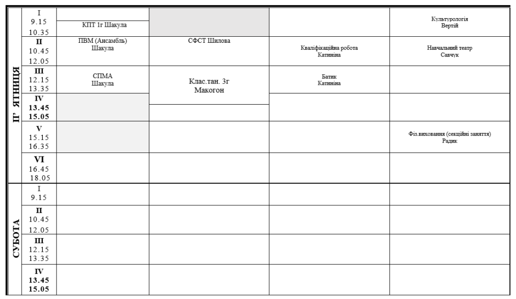РОЗКЛАД ЗАНЯТЬ