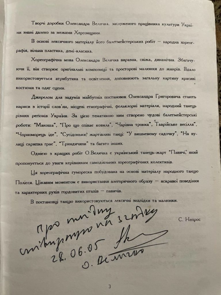 Творчий шлях видатного балетмейстера Херсонщини Олександра Григоровича Величко (1947-2023).